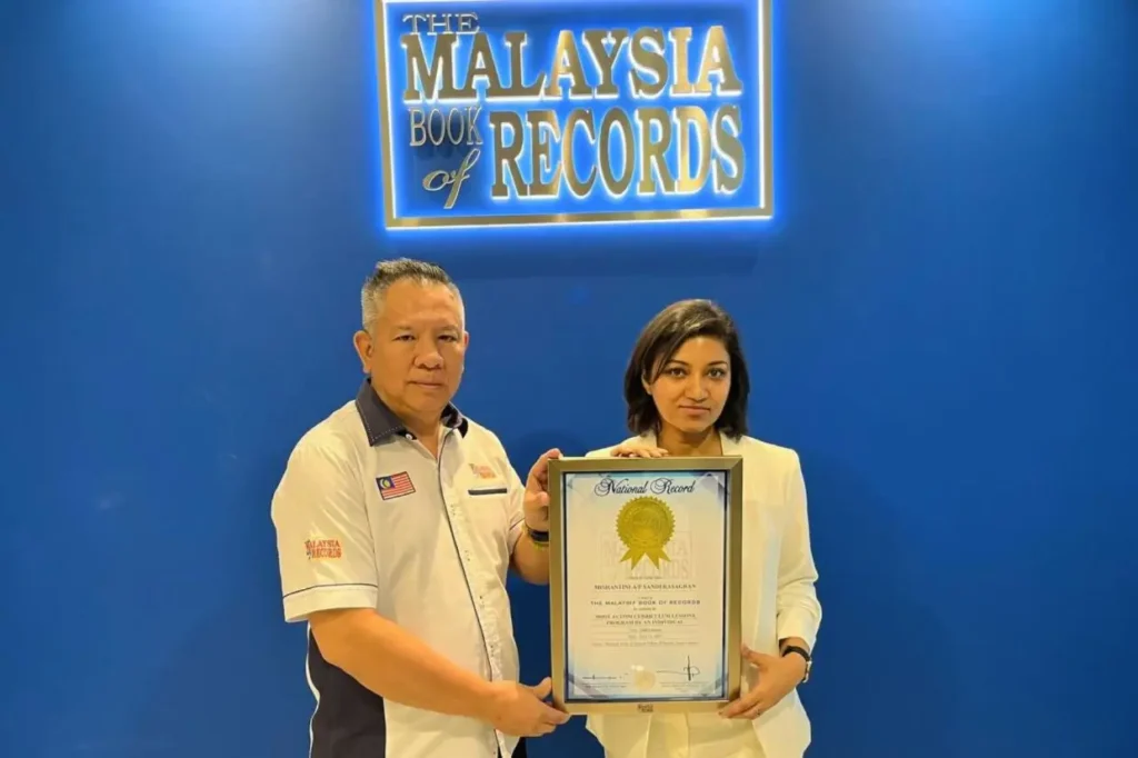 Mishantini (kiri) ketika menerima penghargaan daripada pegawai MBOR, Edwin Yeoh di Kuala Lumpur baru-baru ini.